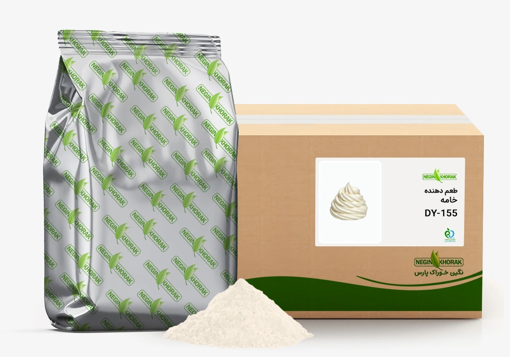 طعم دهنده پودری خامه DY-155 به منظور پوشانندگی بیشتر، در کنار اکثر طعم ها در محوللات پنیری، قابل استفاده می باشد و به صورت پودری با رنگ سفید- شیری موجود می باشد.