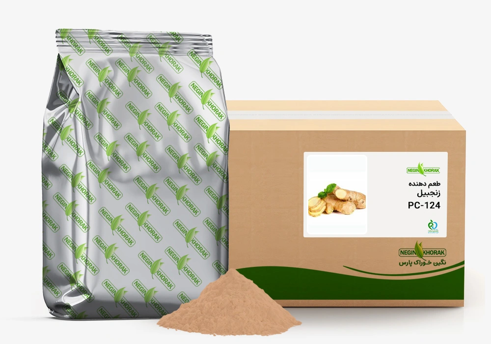 طعم دهنده زنجبیل PC-124 ترکیبی از اولئورزین زنجبیل و یک پرکننده پودری می باشد. رنگ محصول قهوه ای بوده و اندکی تیره تر از ادویه طبیعی می باشد. عمده مولکول های این طعم دهنده gingerol می باشد. این محصول امکان ارائه شدن به صورت انکپسوله را نیز دارد .
