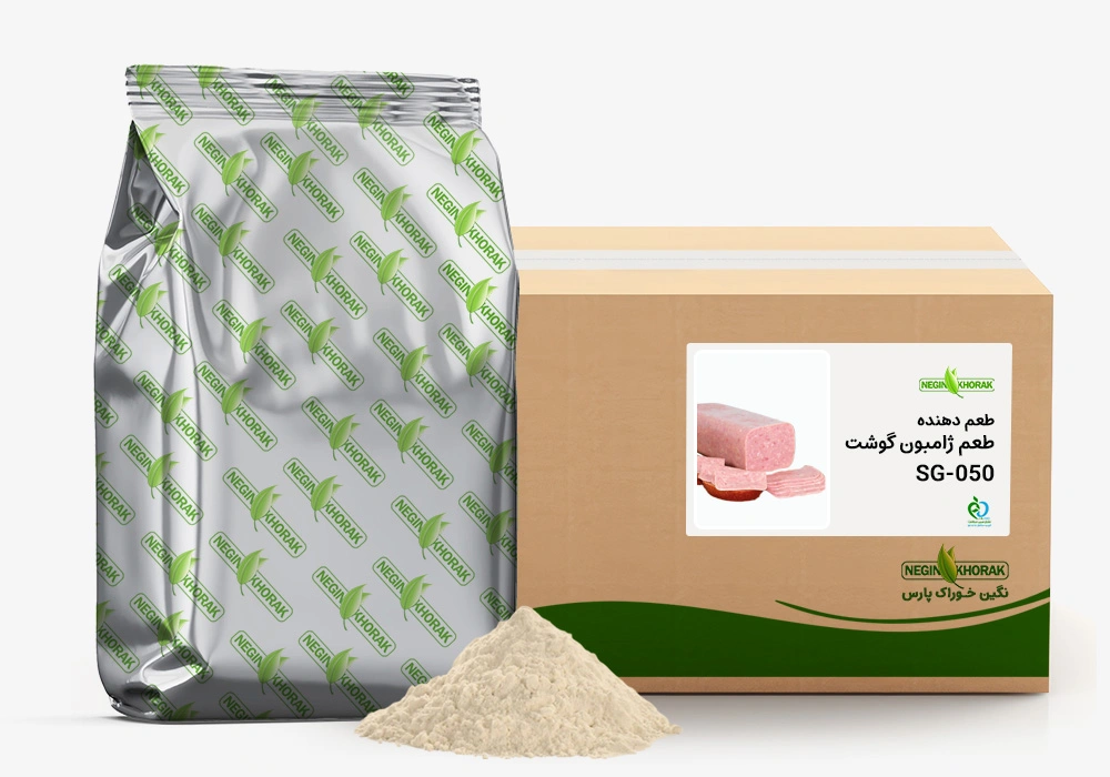 طعمدهنده ژامبون گوشت SG-050 چاشنیای باکیفیت و اقتصادی برای کارخانههای تولید محصولات گوشتی و اسنک است. این محصول با ایمنی بهداشتی، سهولت استفاده و طعم اصیل ژامبون گوشت، کیفیت محصولات صنعتی را ارتقا داده و بوی نامطبوع گوشت را خنثی میکند. دوز مناسب و نگهداری صحیح توصیه میشود.
