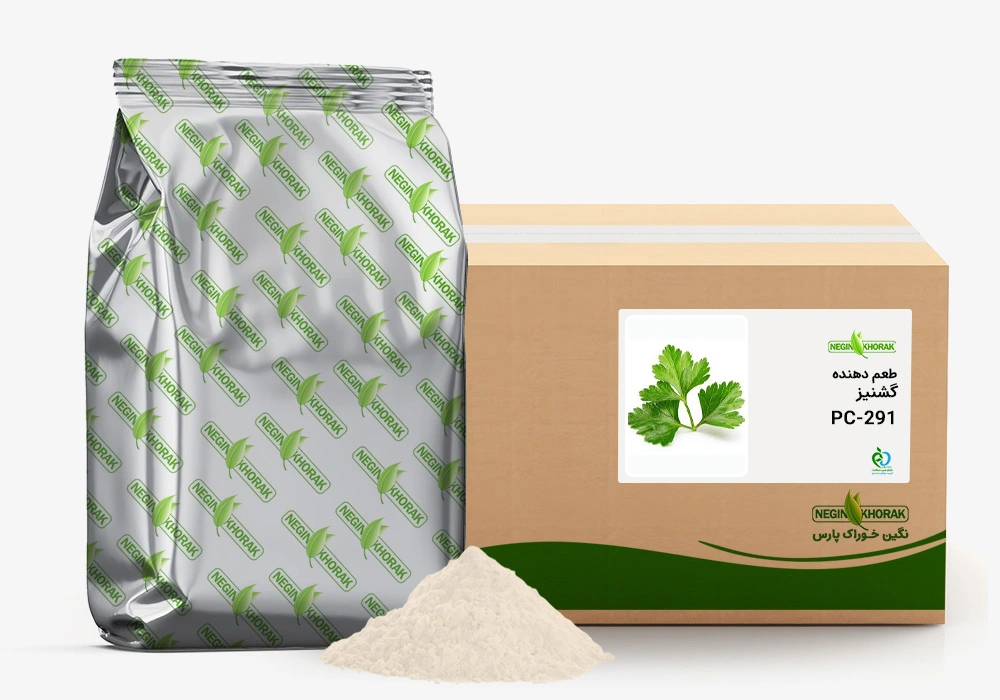 طعمدهنده گشنیز PC-291 یک چاشنی پودری شبهطبیعی است که از ترکیب اسانس گشنیز (Coriandrum sativum) و پرکننده پودری تولید شده و طعم و عطر گرم، شیرین و علفی با نتهای ملایم مرکباتی و تند مشابه گشنیز تازه یا تخم گشنیز را به محصولات غذایی صنعتی میافزاید. این محصول برای کارخانههای تولید محصولات گوشتی، سسها، اسنکها و غذاهای آماده طراحی شده است. PC-291 با فرآیند پاستوریزاسیون تولید شده، عاری از میکروبهایی مانند سالمونلا بوده و با استانداردهای بهداشتی ایران (مانند استانداردهای فرآوردههای گوشتی با 40-80% گوشت) سازگار است. این طعمدهنده به دلیل خواص ضدمیکروبی و آنتیاکسیدانی گشنیز، کاربرد گستردهای در صنایع غذایی دارد.